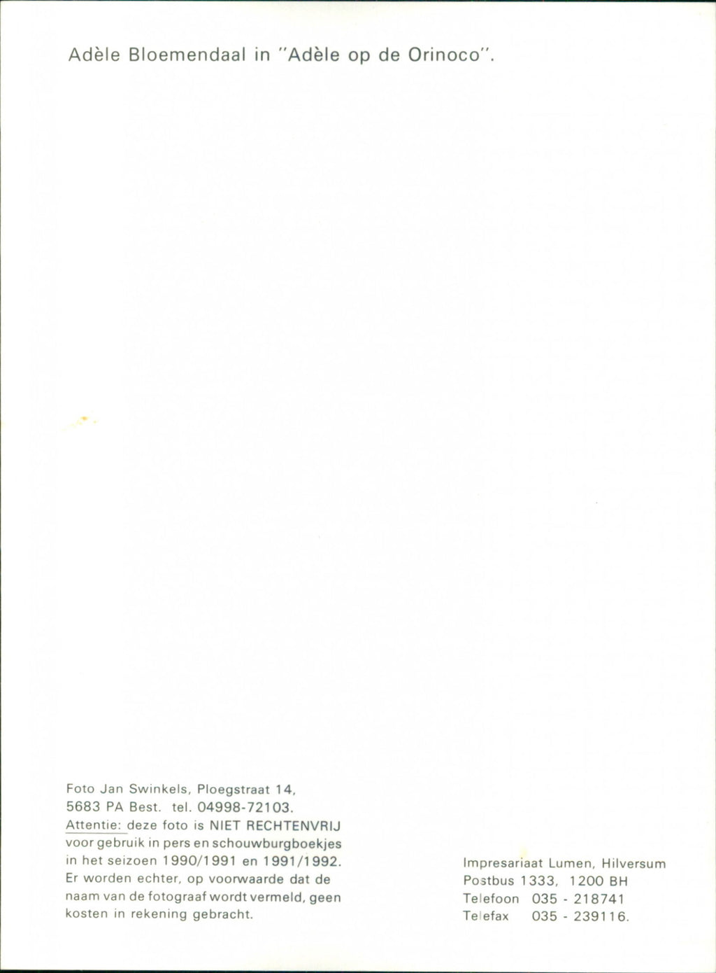 Adèle Bloemendaal in Adèle on the Orinoco. Adèle Bloemendaal in Adèle on the Orinoco.