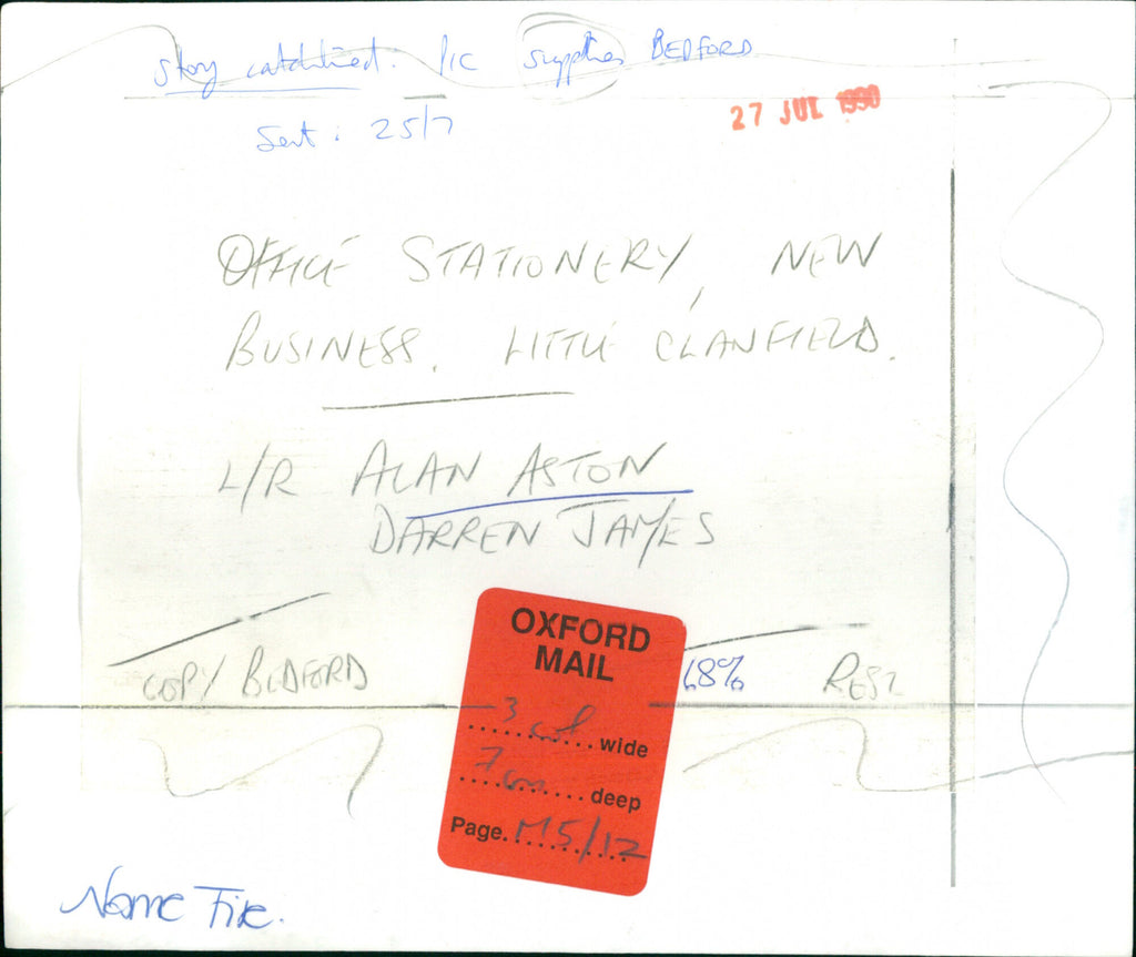 Alan Aston, Darren James. Office Stationery, new business. Little Clanfield. Alan Aston, Darren James. Office Stationery, new business. Little Clanfield.