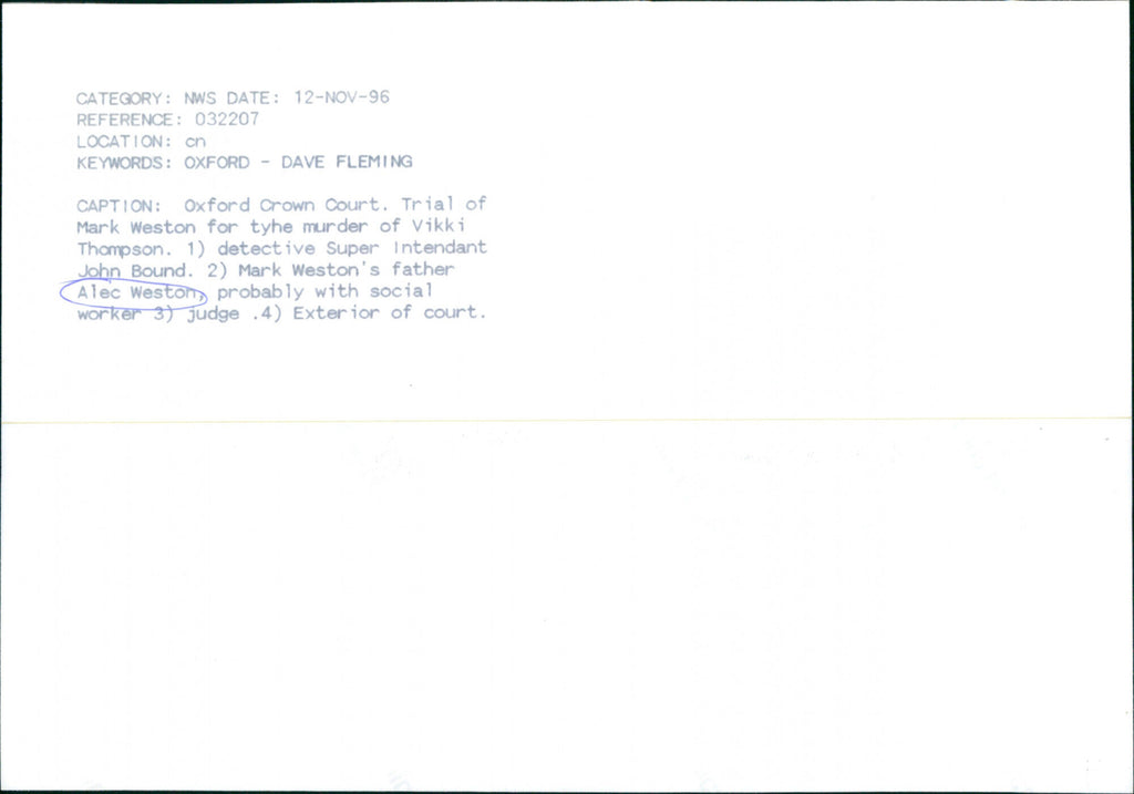 Alec Weston, father of Mark Weston, who is charged for the murder of Vikki Thompson. Alec Weston, father of Mark Weston, who is charged for the murder of Vikki Thompson.