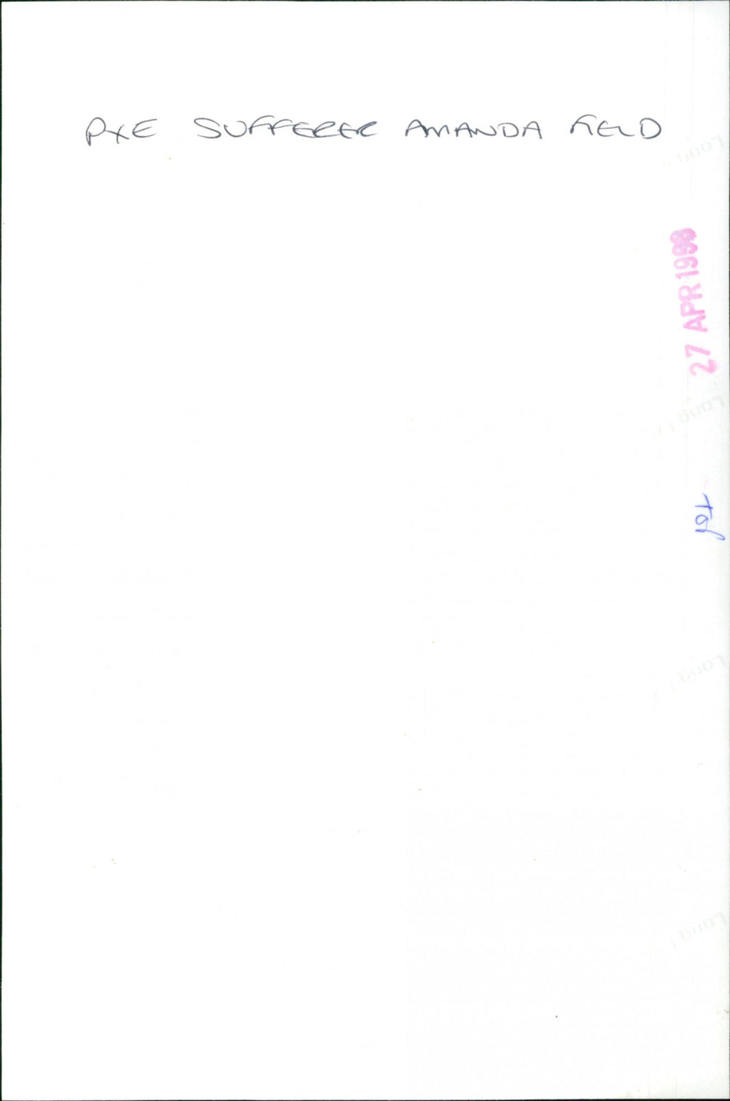 PXE (Pseudoxanthoma elasticum) sufferer Amanda Field. PXE (Pseudoxanthoma elasticum) sufferer Amanda Field.