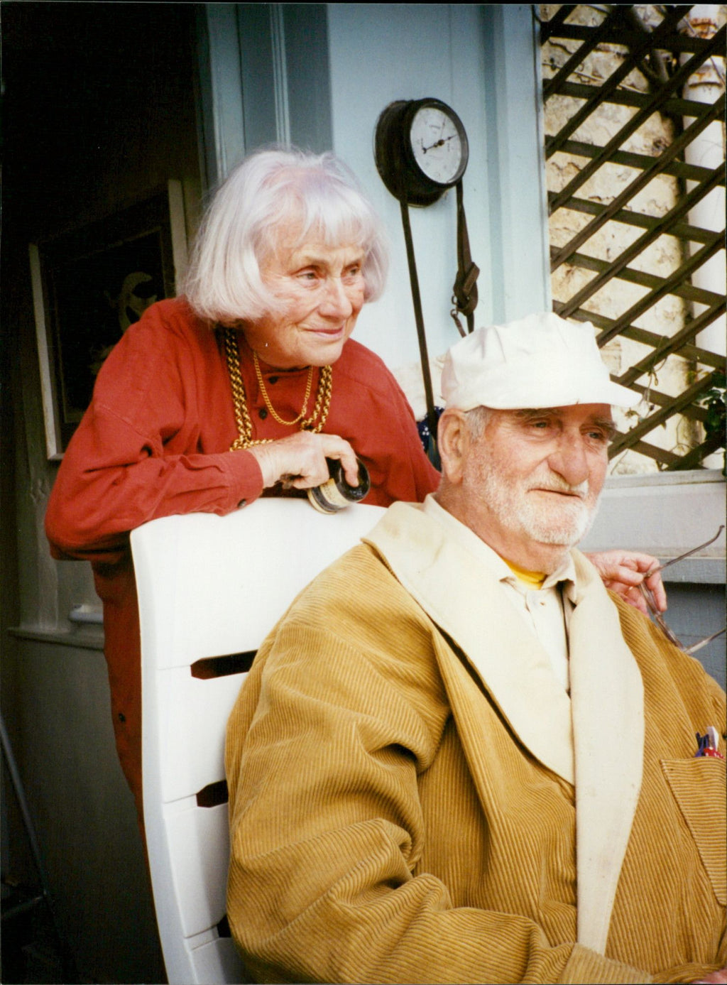 Photo of an old couple in their front porch. Photo of an old couple in their front porch.