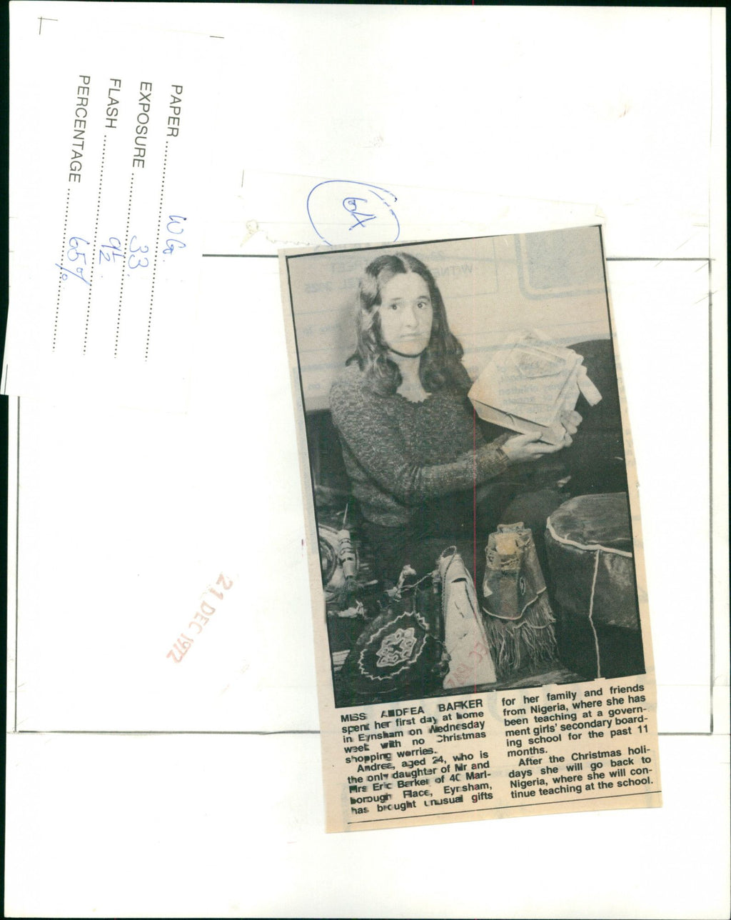 Miss Andrea Barker has brought unusual gifts for her family and friends from Nigeria, where she has been teaching at a government girl's secondary boarding school. Miss Andrea Barker has brought unusual gifts for her family and friends from Nigeria, where she has been teaching at a government girl's secondary boarding school.