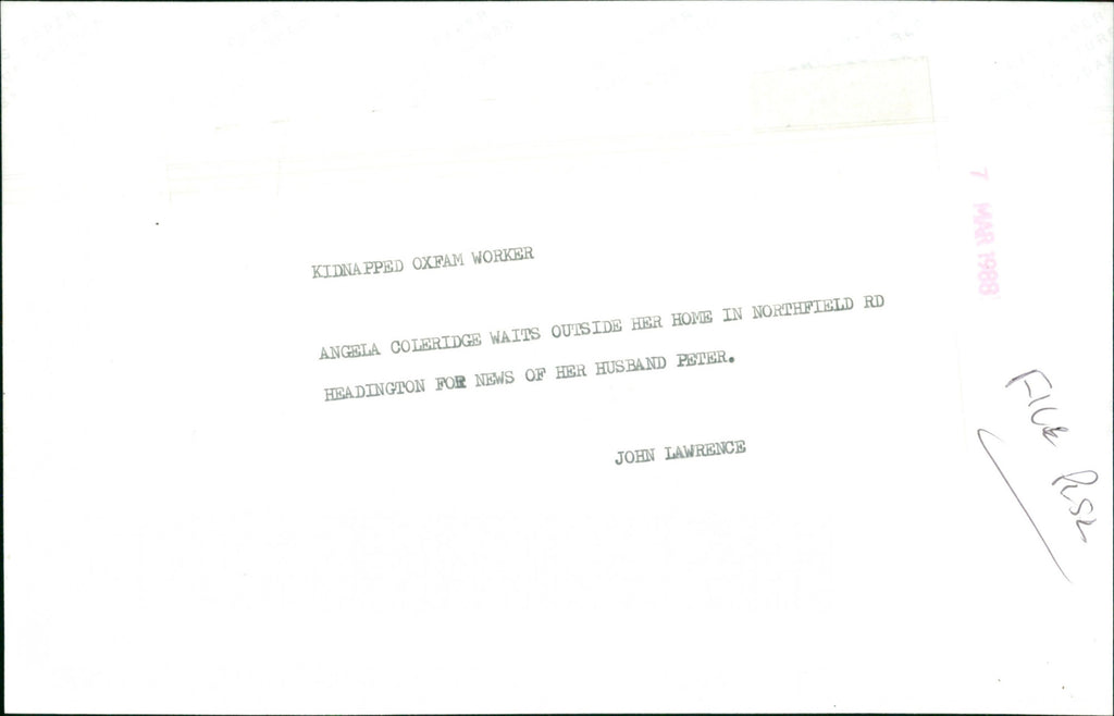Angela Coleridge waits outside her home in Northfield RD, Headington for news on her kidnapped husband Peter Angela Coleridge waits outside her home in Northfield RD, Headington for news on her kidnapped husband Peter