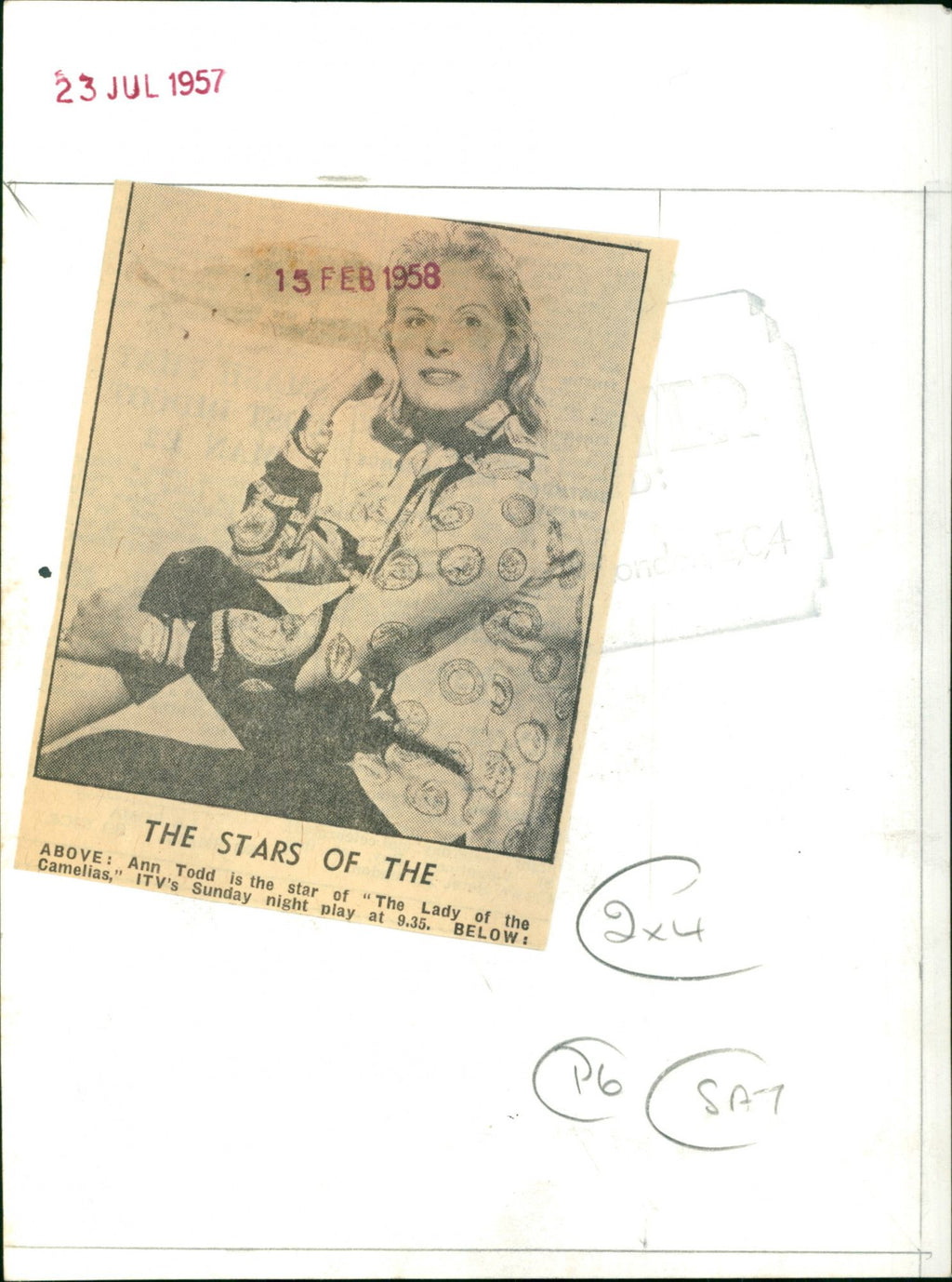 Ann Todd is the star of "The Lady of the Camelias". Ann Todd is the star of "The Lady of the Camelias".