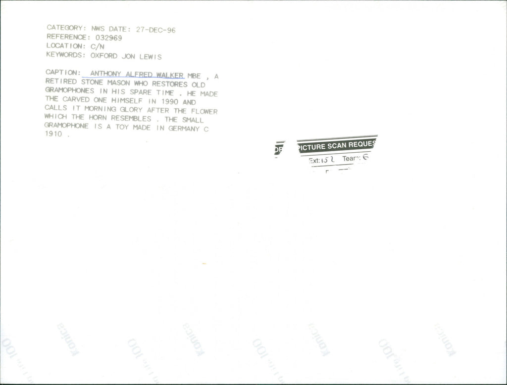 Anthony Alfred Walker MBE, a retired mason who restores old gramophones Anthony Alfred Walker MBE, a retired mason who restores old gramophones