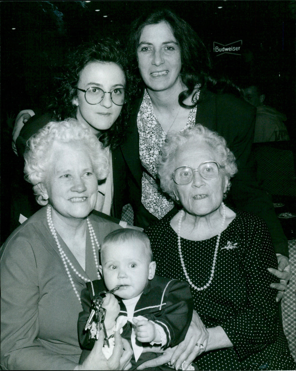 Baby Antonia Wood in the laps of Mrs. Jean Rowlands (left) great grandmother, Mrs. Annie Weedon, great great grandmother, and at the back, Caroline Wood, mother, and Elaine Dean (right), grandmother, at the party in Kidlington. Baby Antonia Wood in the laps of Mrs. Jean Rowlands (left) great grandmother, Mrs. Annie Weedon, great great grandmother, and at the back, Caroline Wood, mother, and Elaine Dean (right), grandmother, at the party in Kidlington.