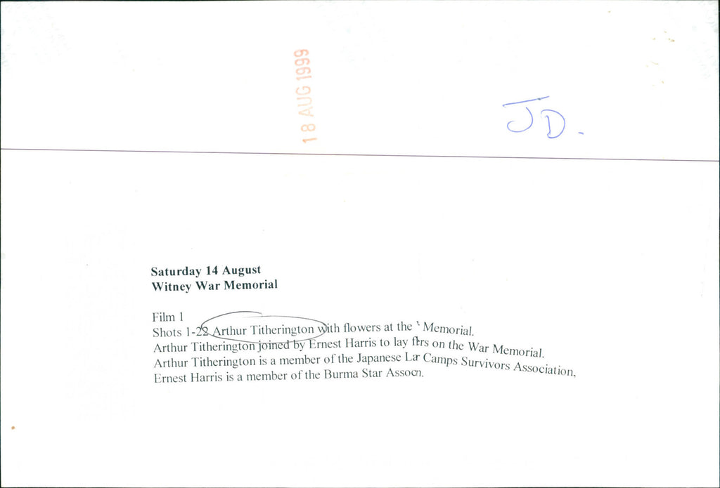 Arthur Titherington with flowers at the Memorial. Arthur Titherington with flowers at the Memorial.