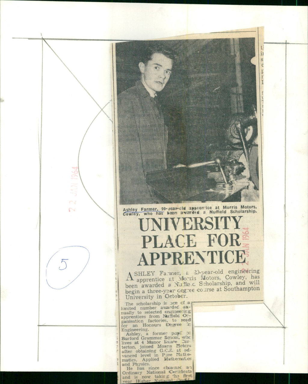 Engineering apprentice at Morris Motors , Cowley Engineering apprentice at Morris Motors , Cowley