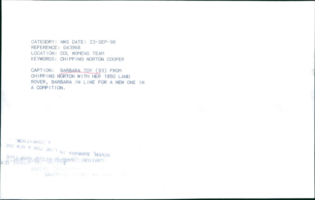 Barbara Toy from Chipping Norton with her 1950 Land Rover, Barbara in line for a new one in compition. Barbara Toy from Chipping Norton with her 1950 Land Rover, Barbara in line for a new one in compition.