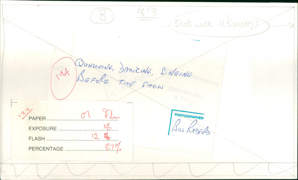 Queueing, dancing, singing before the show. Queueing, dancing, singing before the show.