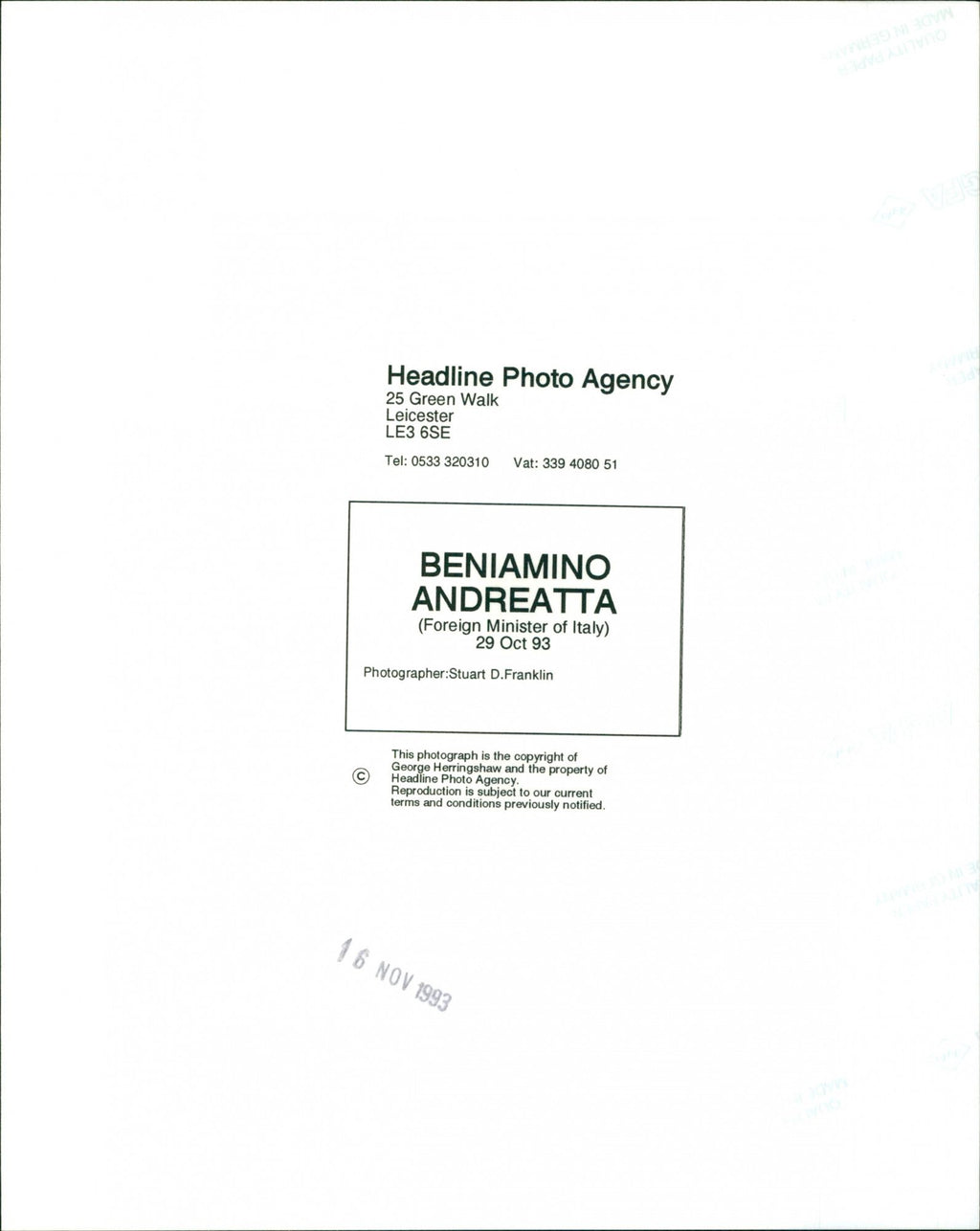 All the original vintage images are sold without watermarks. The prints are all over 30 years old and have been in the storage of the newspapers for decades. We sell them in the same conditions they were given to us by the archives.