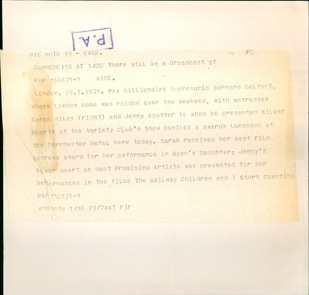All our press photos are LIMITED ARCHIVE ORIGINALS - they are the actual prints that were used by the newspapers, they are not reprints or digital prints produced by us. All the prints are at least 30 years old and up to 100 years old.