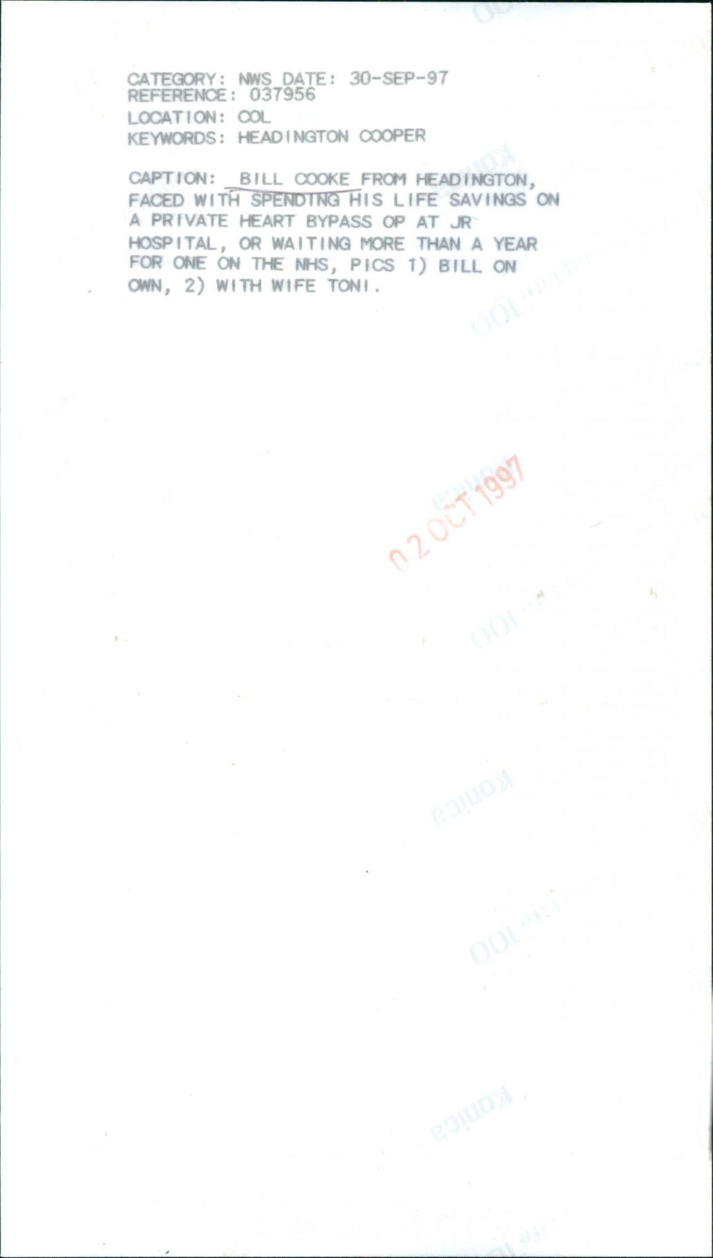 Bill Cooke from Headington with wife Toni faced with spending his life saving on a private heart bypass OP at JR Hospital Bill Cooke from Headington with wife Toni faced with spending his life saving on a private heart bypass OP at JR Hospital