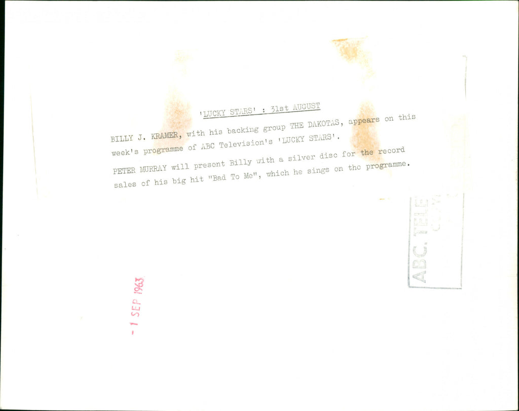 Billy J. Kramer appears in ABC Television's Lucky Stars. Billy J. Kramer appears in ABC Television's Lucky Stars.