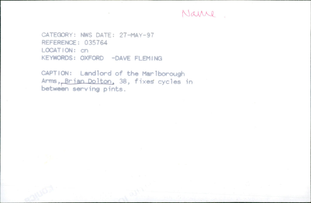Landlord of the Marlborough Arms, Brian Dolton, fixes cycles in between serving pints. Landlord of the Marlborough Arms, Brian Dolton, fixes cycles in between serving pints.