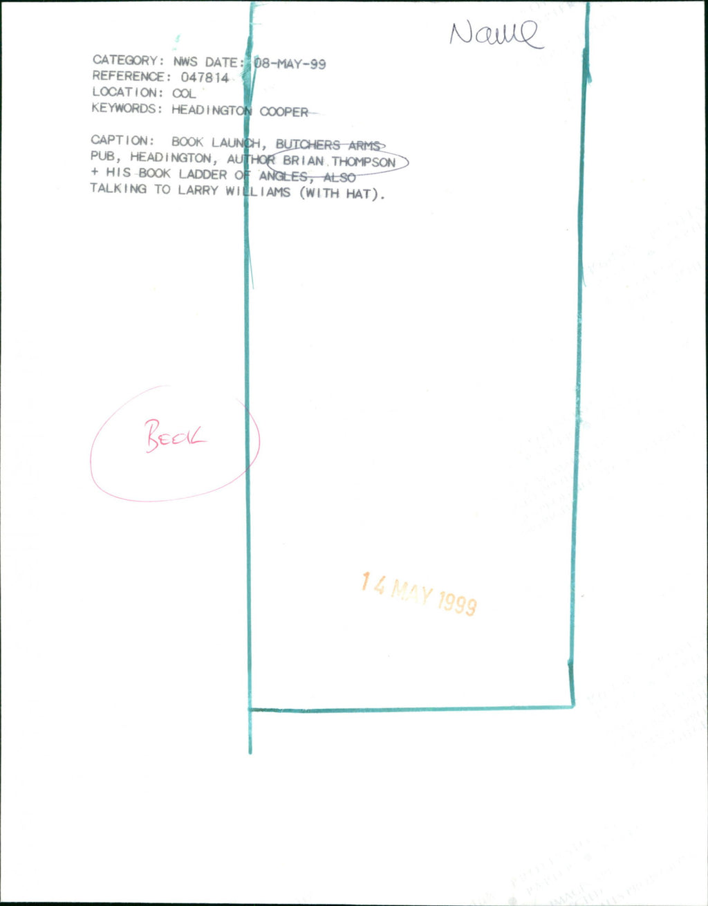 Book launch, The Butcher's Arms, Headington. Author Brian Thompson and his book Ladder of Angels. Book launch, The Butcher's Arms, Headington. Author Brian Thompson and his book Ladder of Angels.