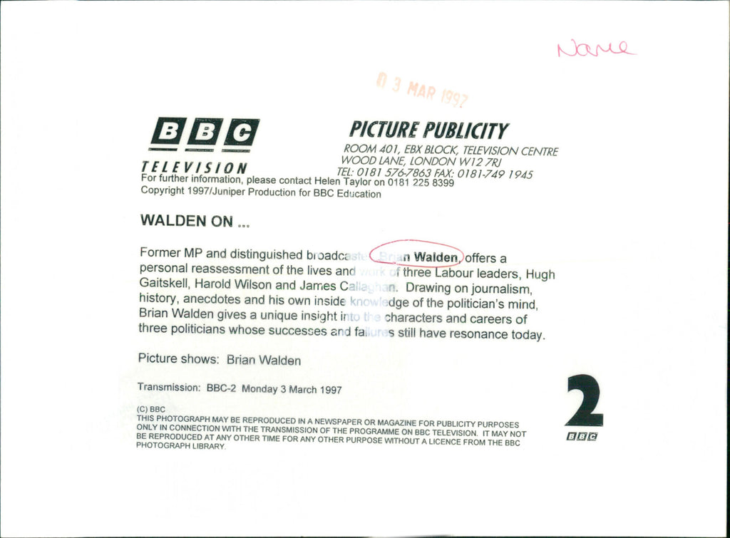 Brian Walden, former MP and distinguished broadcaster Brian Walden, former MP and distinguished broadcaster