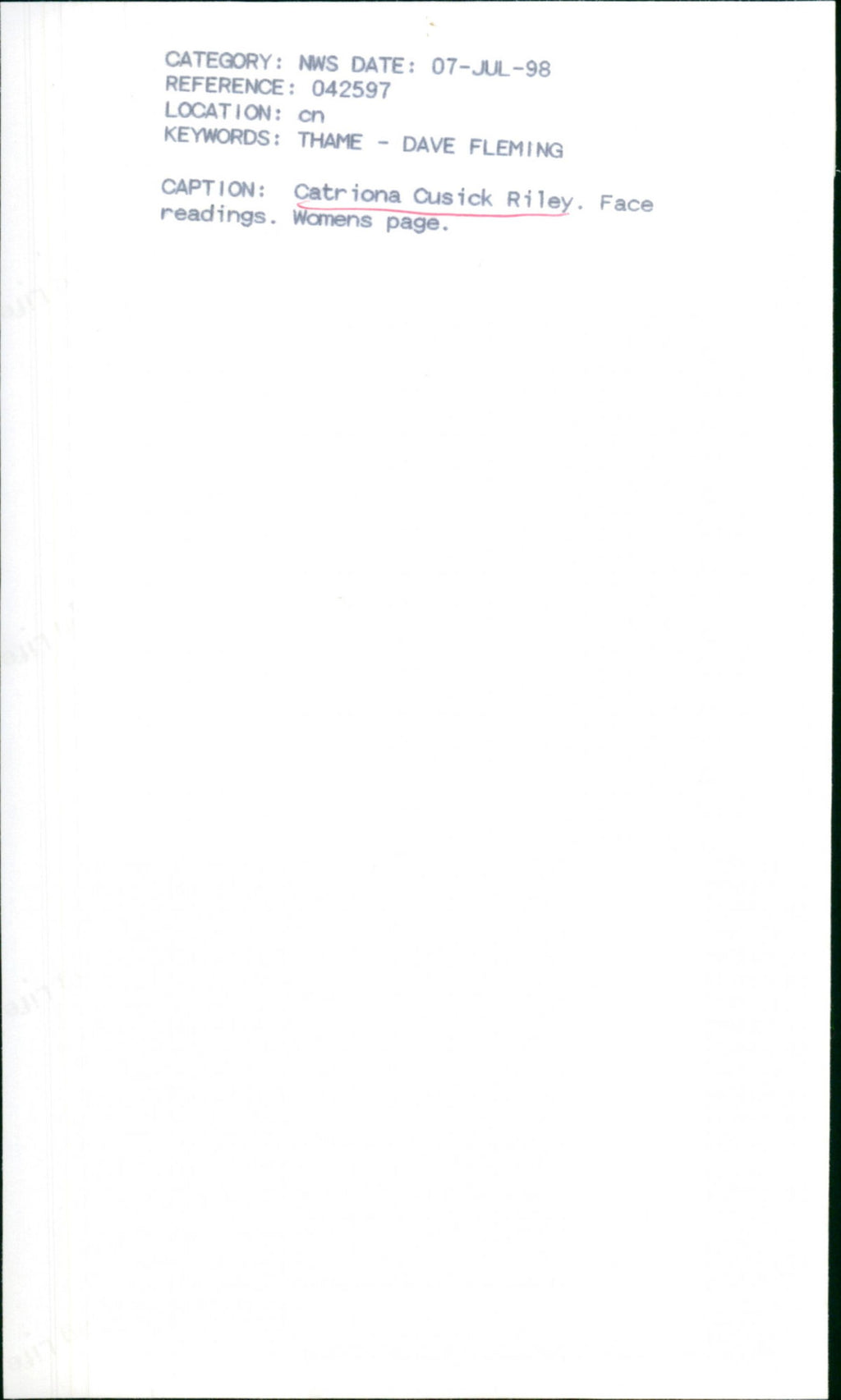 Catriona Cusick Riley, does face readings. Catriona Cusick Riley, does face readings.