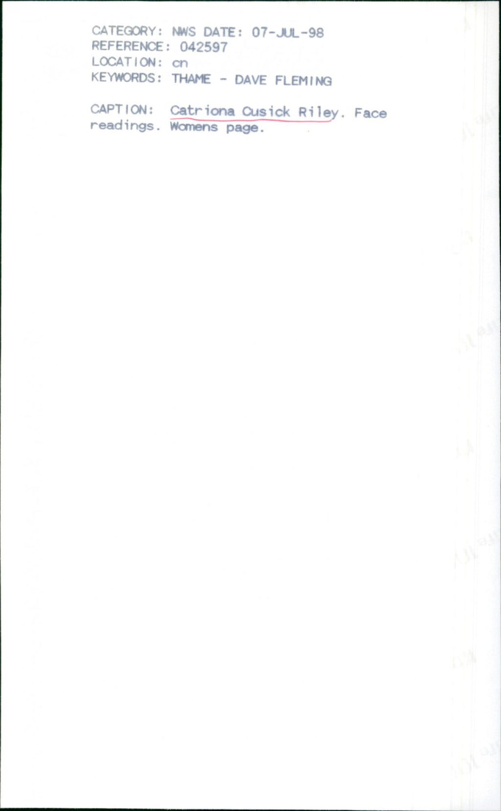 Catriona Cusick Riley, does face readings. Catriona Cusick Riley, does face readings.
