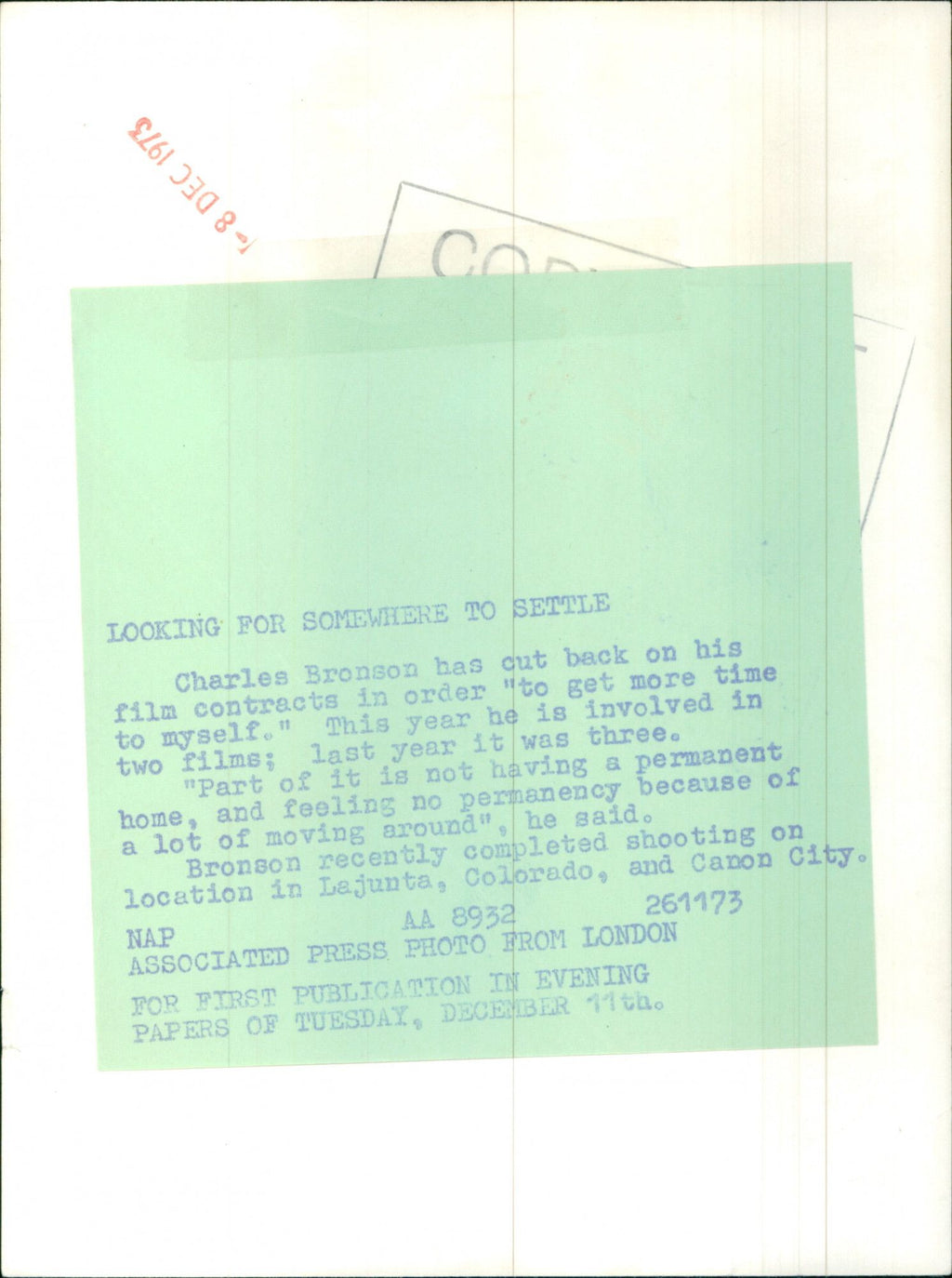Charles Bronson has cut back on his film contracts in order "to get more time to myself." Charles Bronson has cut back on his film contracts in order "to get more time to myself."