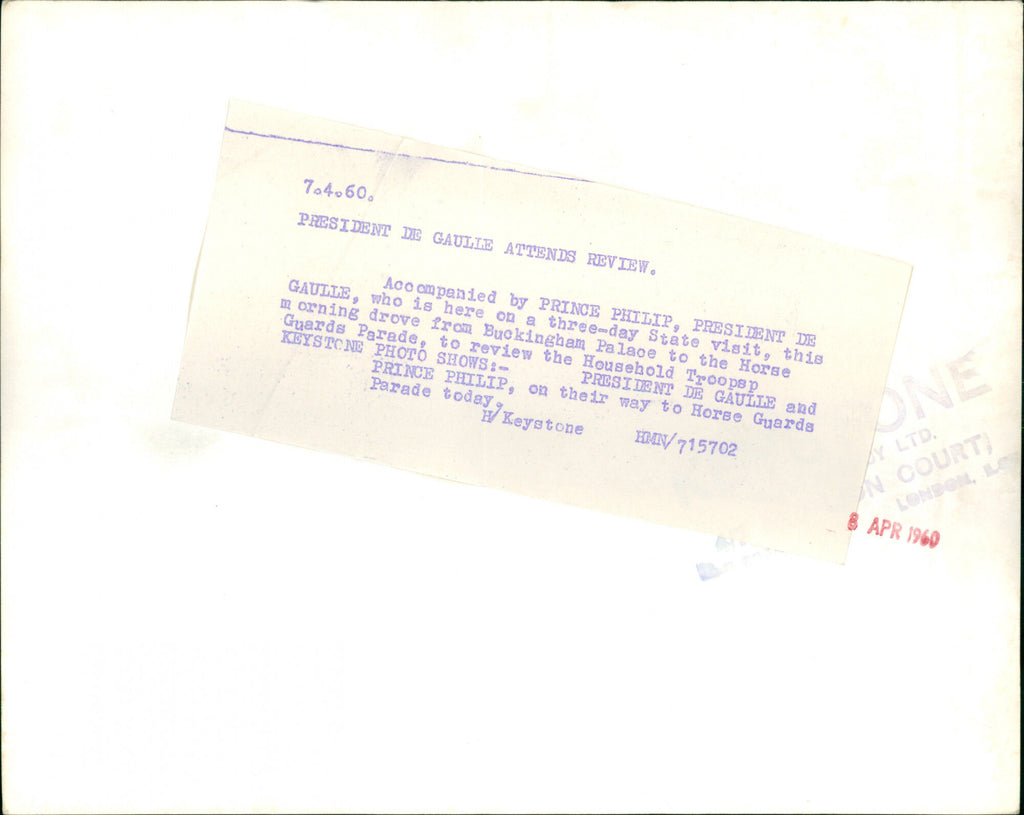 Charles de Gaulle with Prince Philip - Vintage Photograph