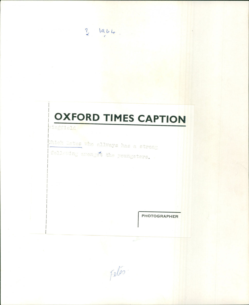 Chick Bates who always has a strong following amongst the youngsters Chick Bates who always has a strong following amongst the youngsters
