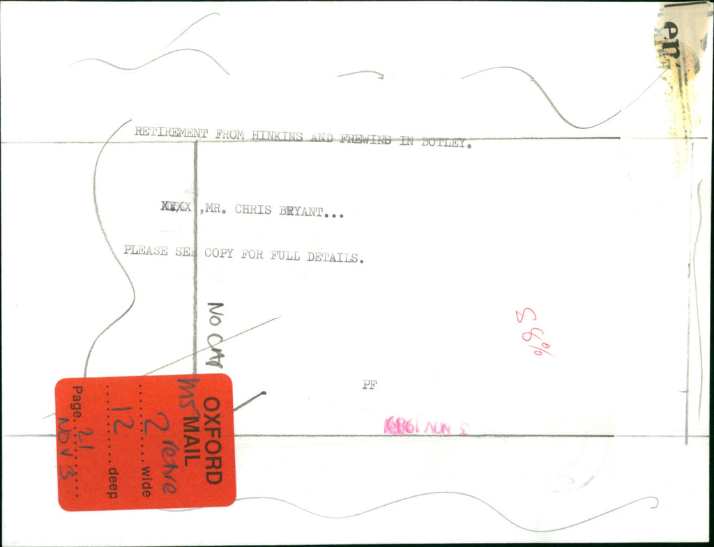 Chris Bryant retired from Hinkins and Frewins in Botley. Chris Bryant retired from Hinkins and Frewins in Botley.