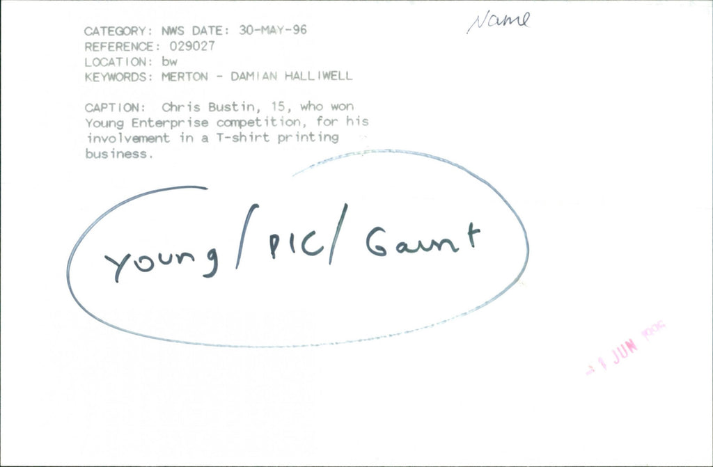 Chris Bustin 15 who won Young Enterprise competition for his involvement in a T-shirt printing business. Chris Bustin 15 who won Young Enterprise competition for his involvement in a T-shirt printing business.