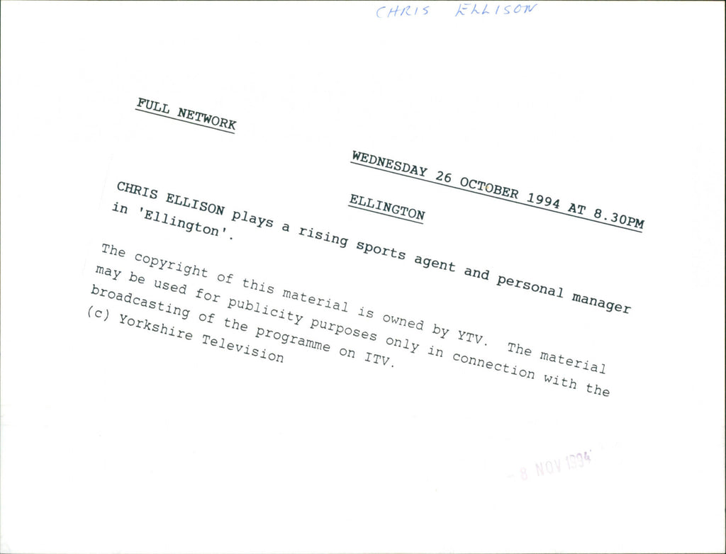 Chris Ellison plays a rising sports agent and personal manager in the film "Ellington" Chris Ellison plays a rising sports agent and personal manager in the film "Ellington"