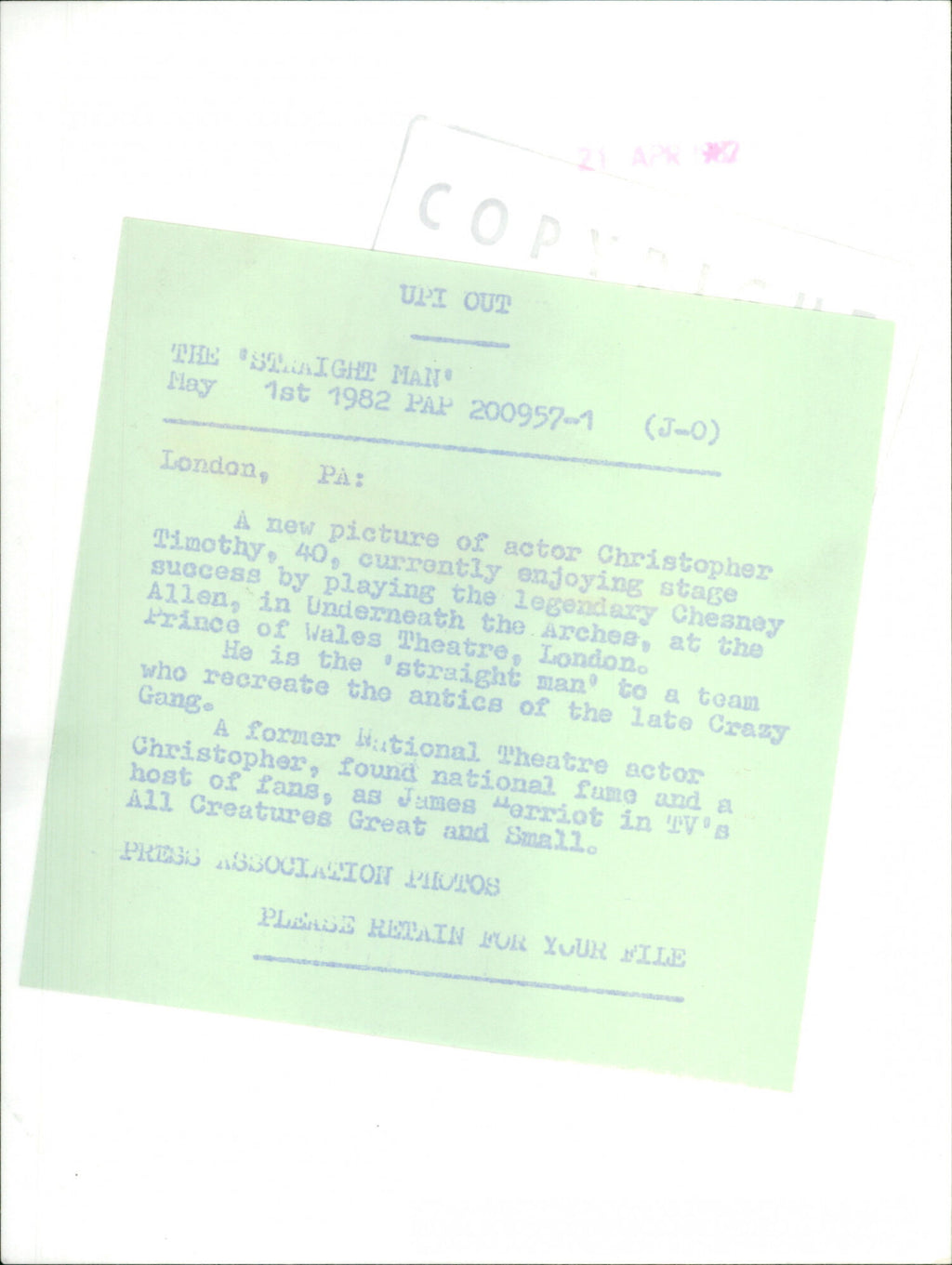 All our press photos are LIMITED ARCHIVE ORIGINALS - they are the actual prints that were used by the newspapers, they are not reprints or digital prints produced by us. All the prints are at least 30 years old and up to 100 years old.