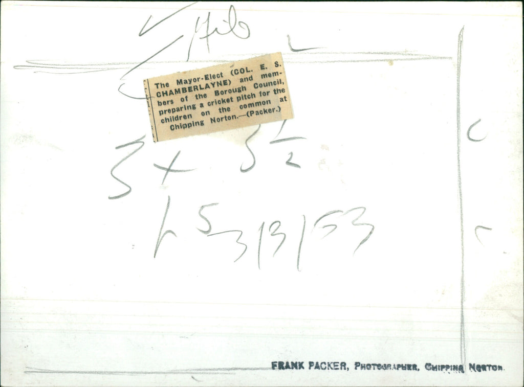 The Mayor-Elect (Col. E. S. Chamberlayne) and members of the Borough Council, preparing a cricket pitch for the children on the common at Chipping Norton. The Mayor-Elect (Col. E. S. Chamberlayne) and members of the Borough Council, preparing a cricket pitch for the children on the common at Chipping Norton.