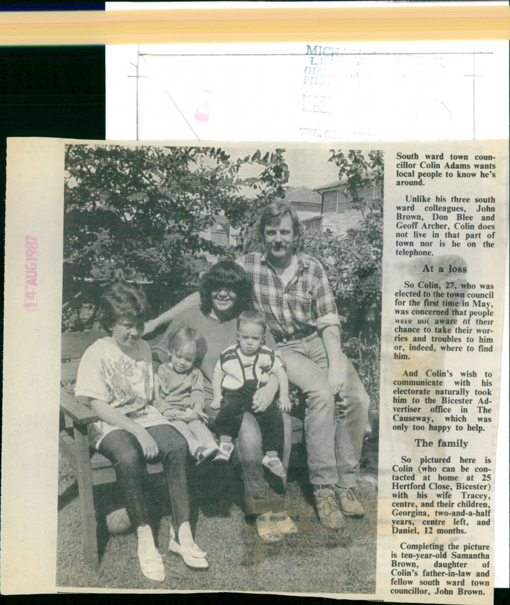 South ward town councillor Colin Adams wants local people to know he's around. Unlike his 3 south ward colleagues, John Brown, Don Blee and Geoff Archer, Colin does not live in that part of town nor is he on the telephone. He is with his family Tracey (wife), Georgina, Daniel and Samantha Brown. South ward town councillor Colin Adams wants local people to know he's around. Unlike his 3 south ward colleagues, John Brown, Don Blee and Geoff Archer, Colin does not live in that part of town nor is he on the telephone. He is with his family Tracey (wife), Georgina, Daniel and Samantha Brown.