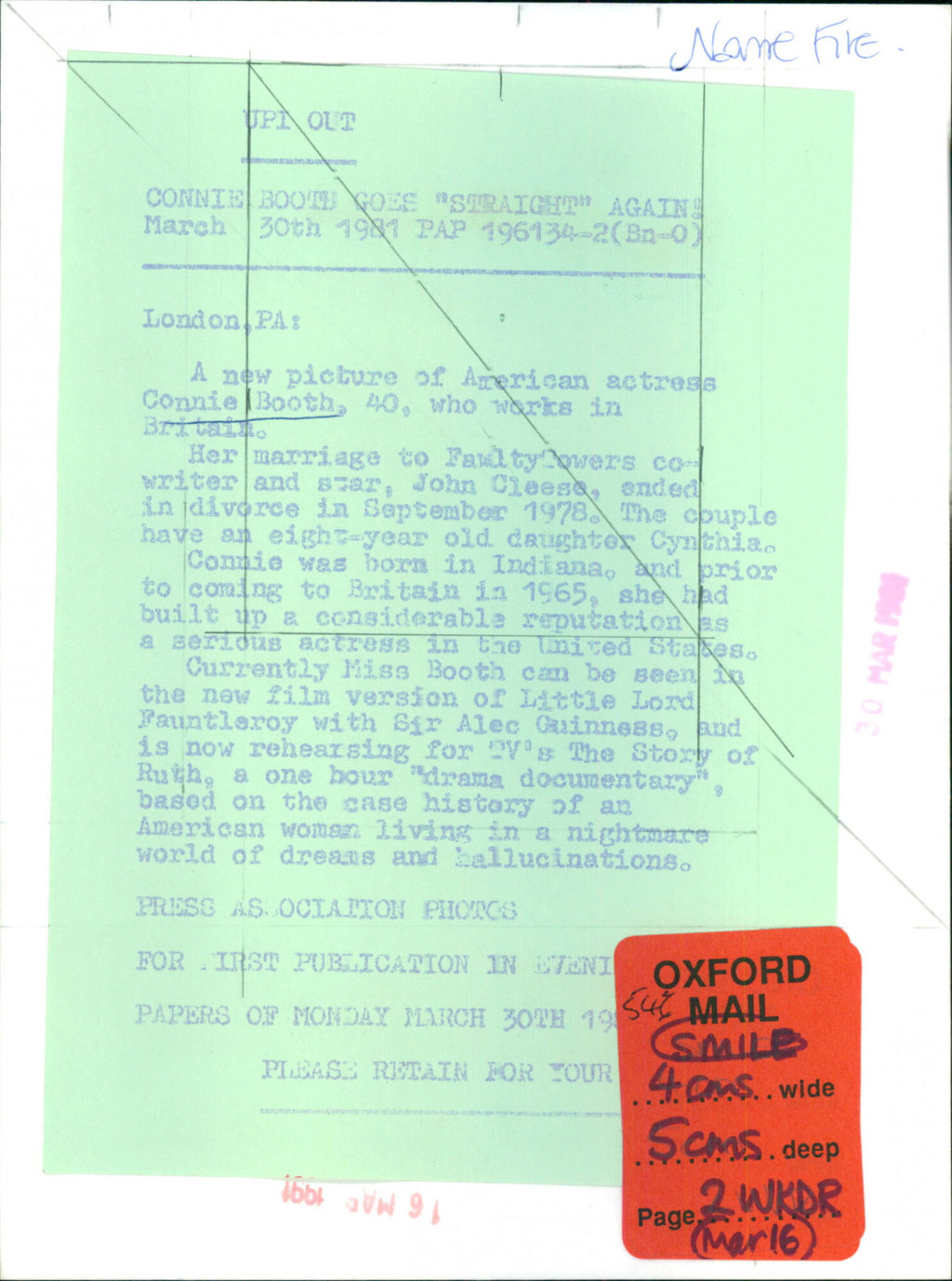 All our press photos are LIMITED ARCHIVE ORIGINALS - they are the actual prints that were used by the newspapers, they are not reprints or digital prints produced by us. All the prints are at least 30 years old and up to 100 years old.