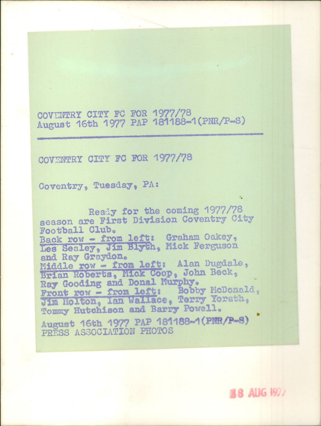All our press photos are LIMITED ARCHIVE ORIGINALS - they are the actual prints that were used by the newspapers, they are not reprints or digital prints produced by us. All the prints are at least 30 years old and up to 100 years old.