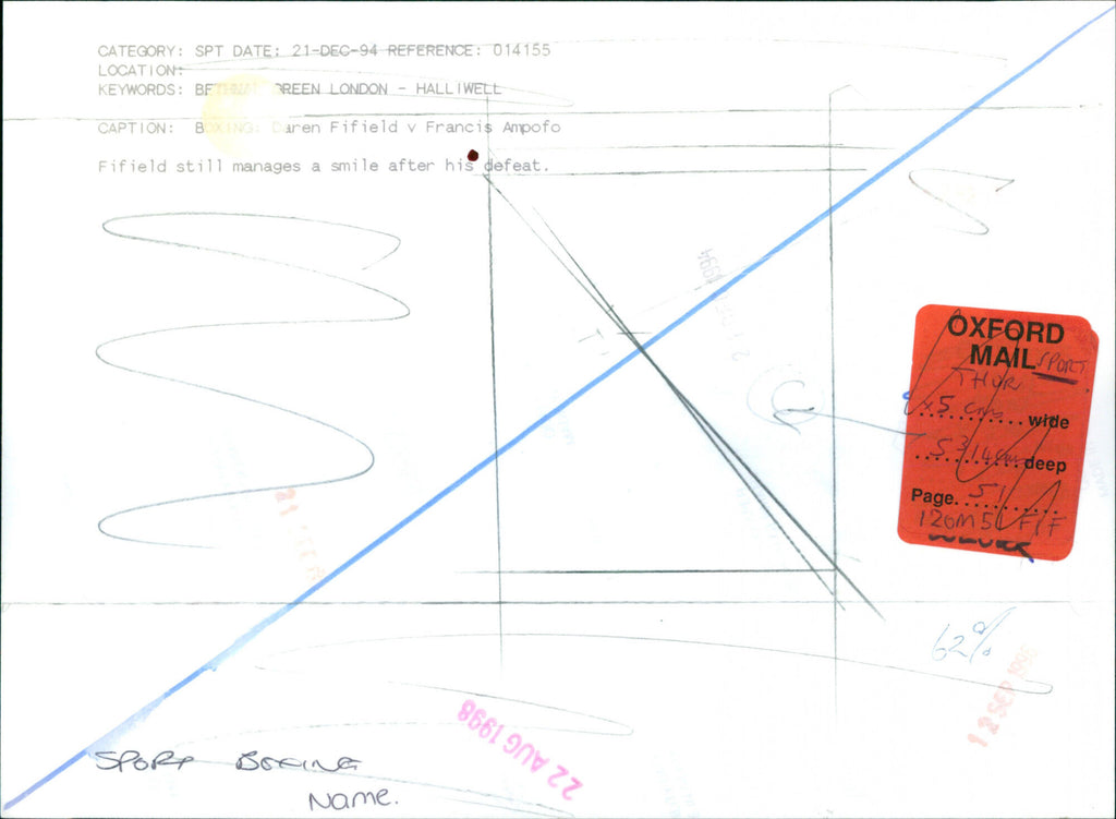 Boxing: Darren Fifield v Francis Ampofo. Fifield still manages a smile after his defeat Boxing: Darren Fifield v Francis Ampofo. Fifield still manages a smile after his defeat