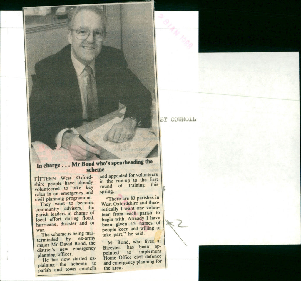 The scheme is being masterminded by ex-army major Mr. David Bond, the district's new emergency planning officer. The scheme is being masterminded by ex-army major Mr. David Bond, the district's new emergency planning officer.