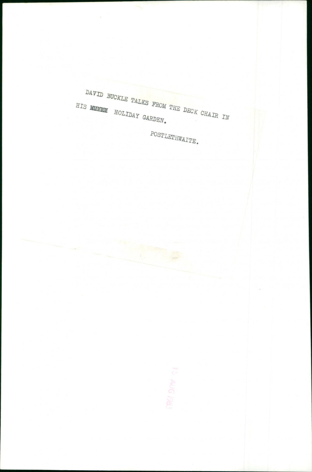 David Buckle talks from the deck chair in his holiday garden. David Buckle talks from the deck chair in his holiday garden.