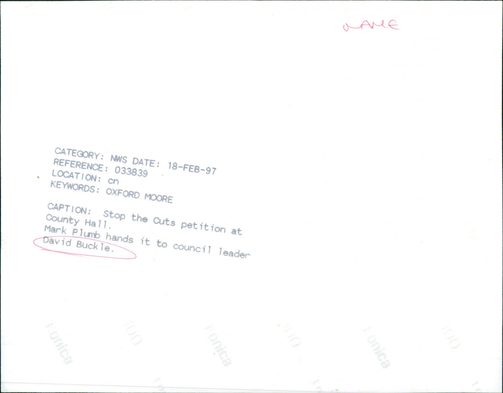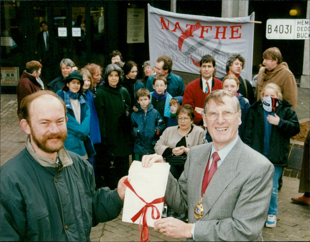 Mark Plumb hands it to the council leader David Buckle Mark Plumb hands it to the council leader David Buckle