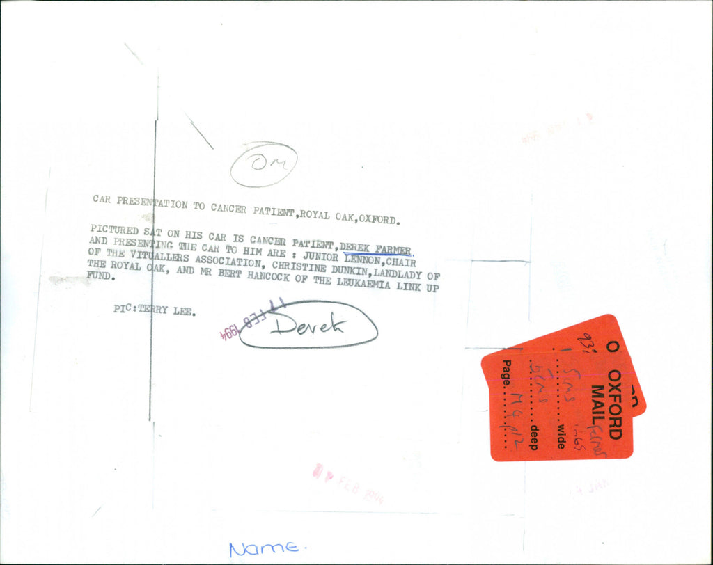 Car presentation to Cancer patient Derek Farmer Car presentation to Cancer patient Derek Farmer