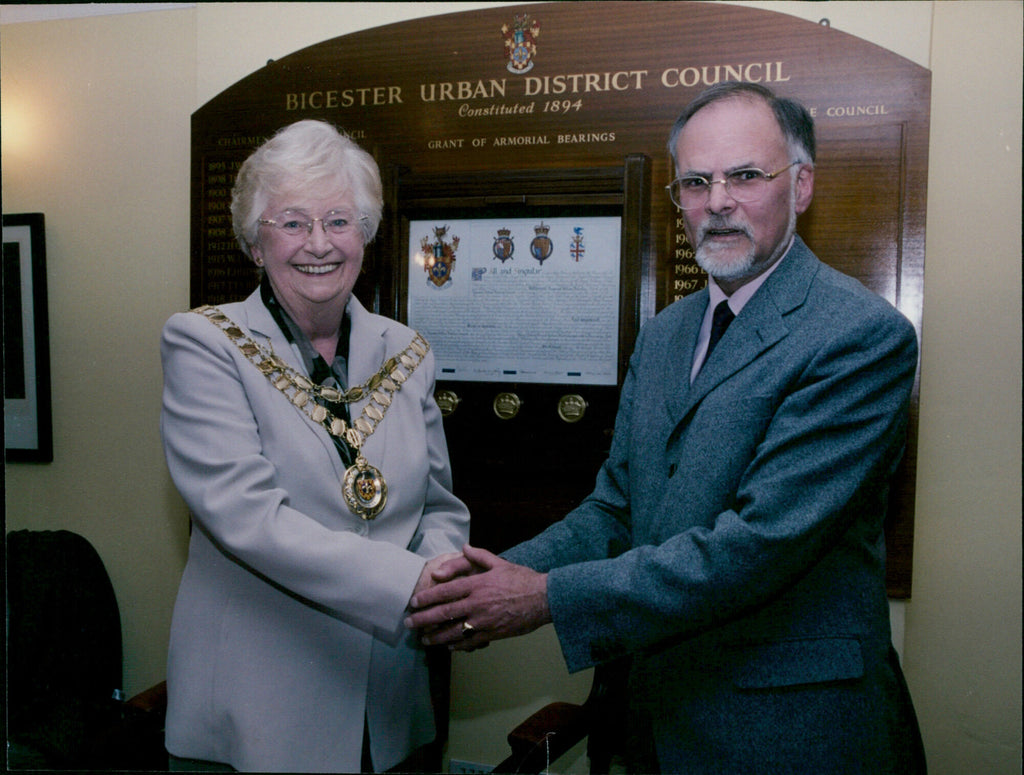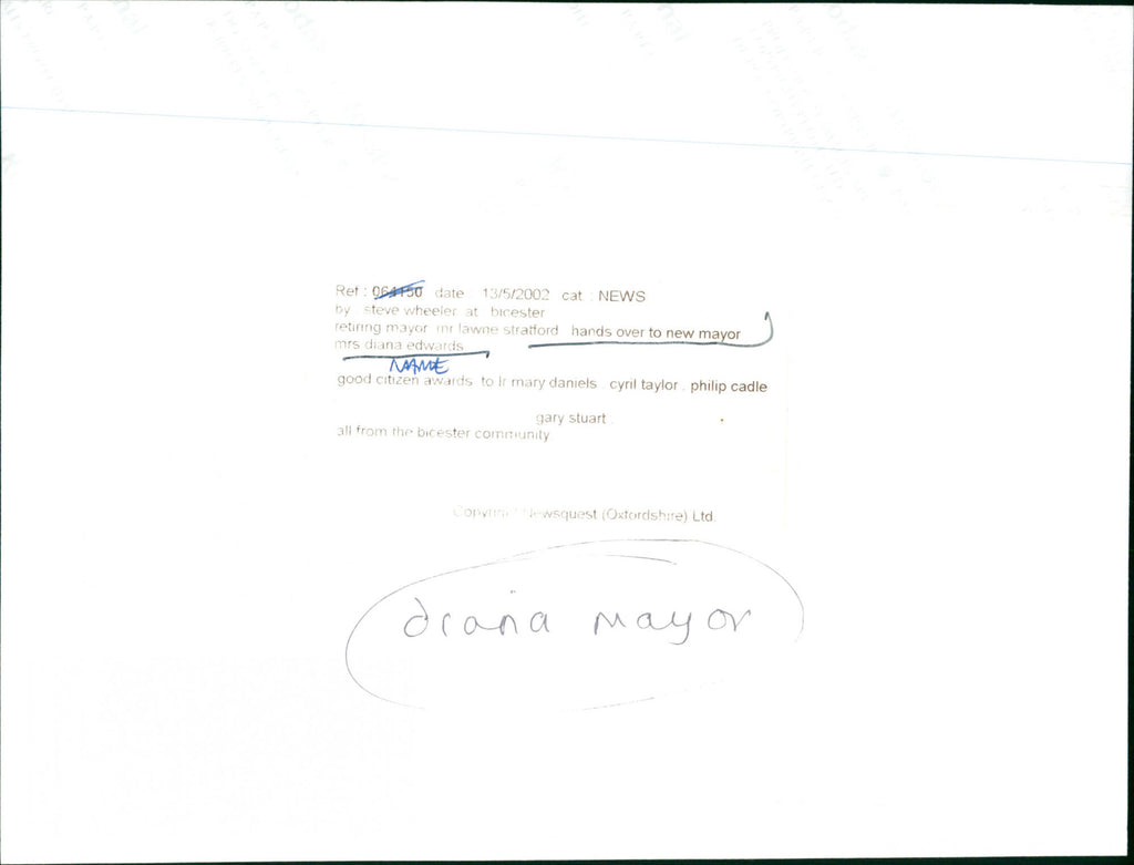 Retiring Mayor Mr. Lawrence Stratford hands over new Mayor Diana Edwards. Retiring Mayor Mr. Lawrence Stratford hands over new Mayor Diana Edwards.