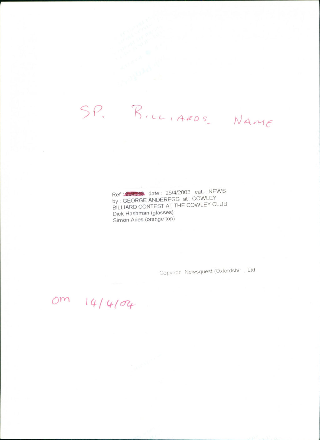 Dick Hashman at the Cowley Club Dick Hashman at the Cowley Club