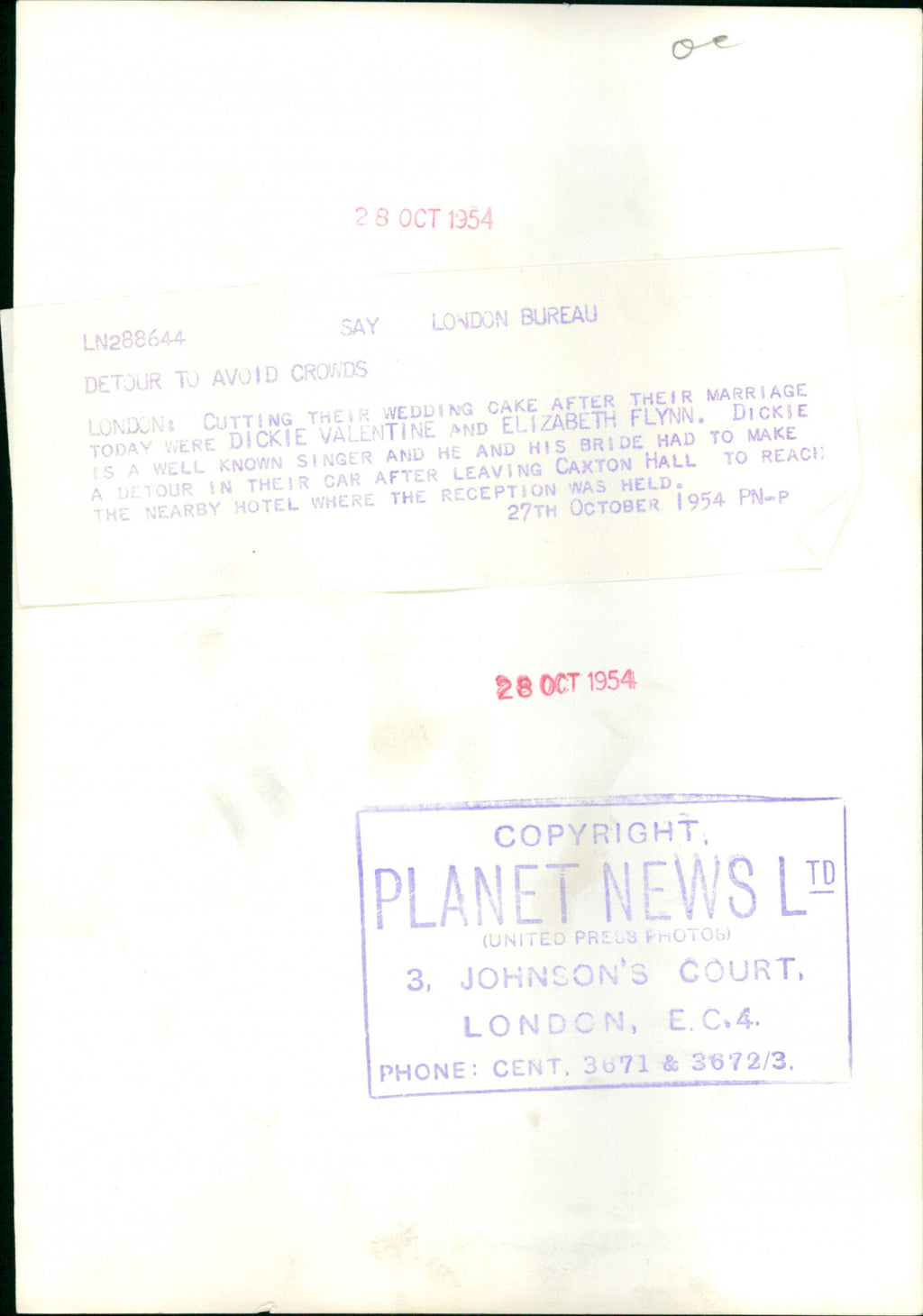 Dickie Valentine and his bride, Elizabeth Flynn Dickie Valentine and his bride, Elizabeth Flynn