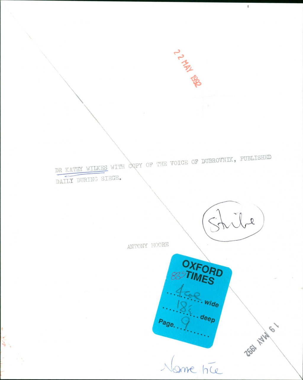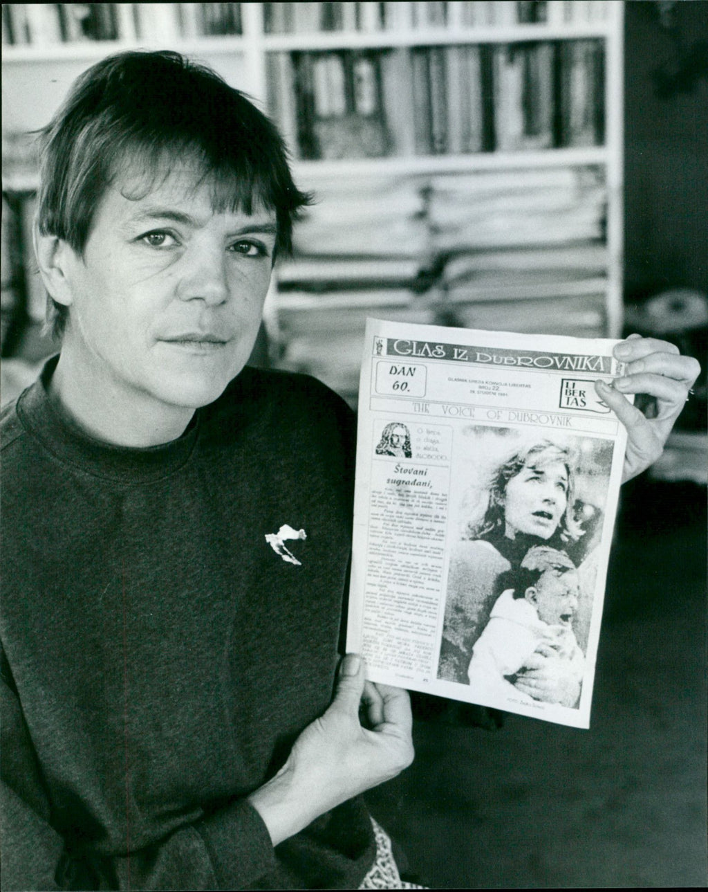 Dr Kathy Wilkes with copy of the voice of Dubrovnik, published daily during siege. Dr Kathy Wilkes with copy of the voice of Dubrovnik, published daily during siege.