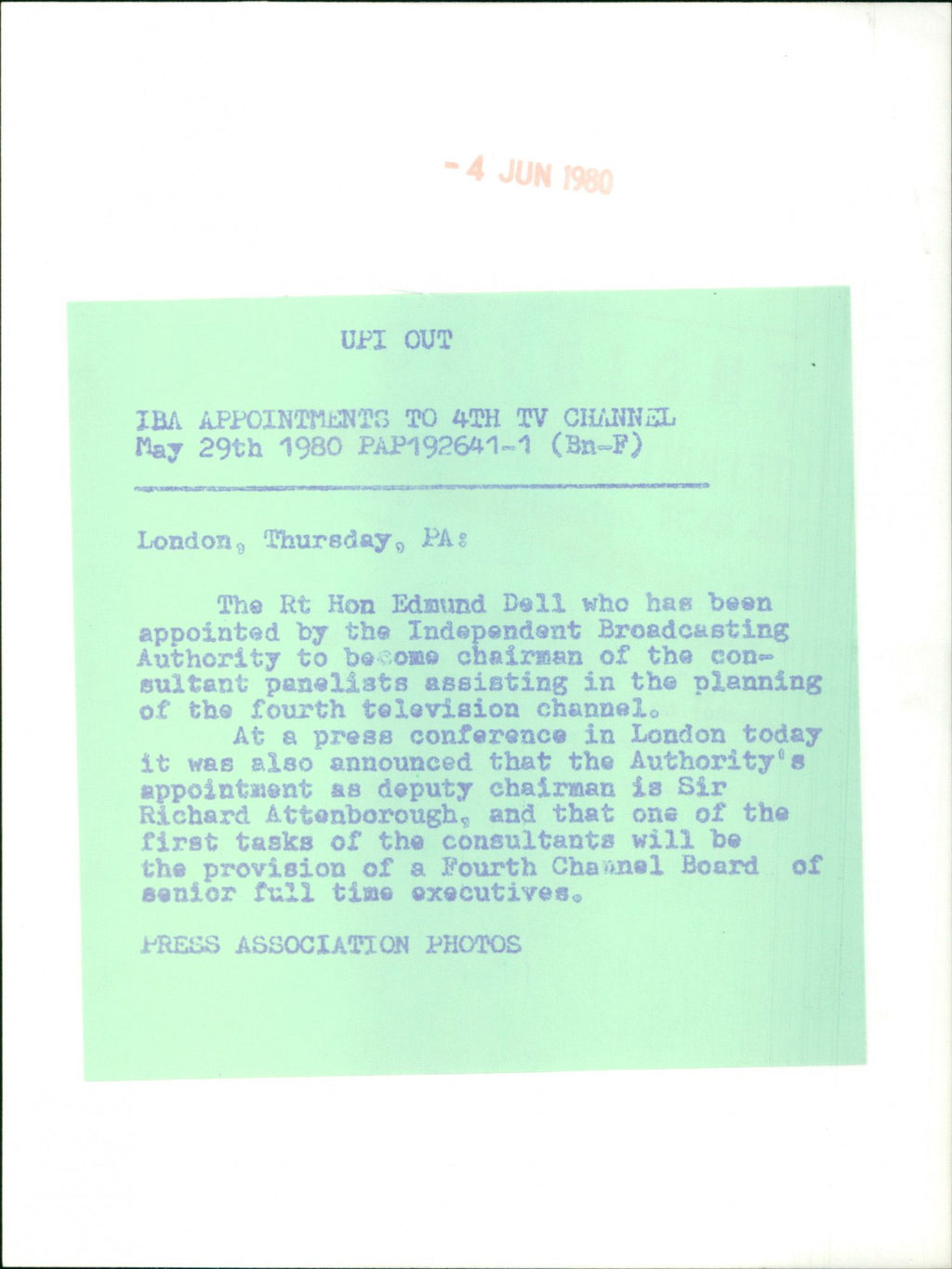 Edmund Dell, chairman of the Independent Broadcasting Authority Edmund Dell, chairman of the Independent Broadcasting Authority