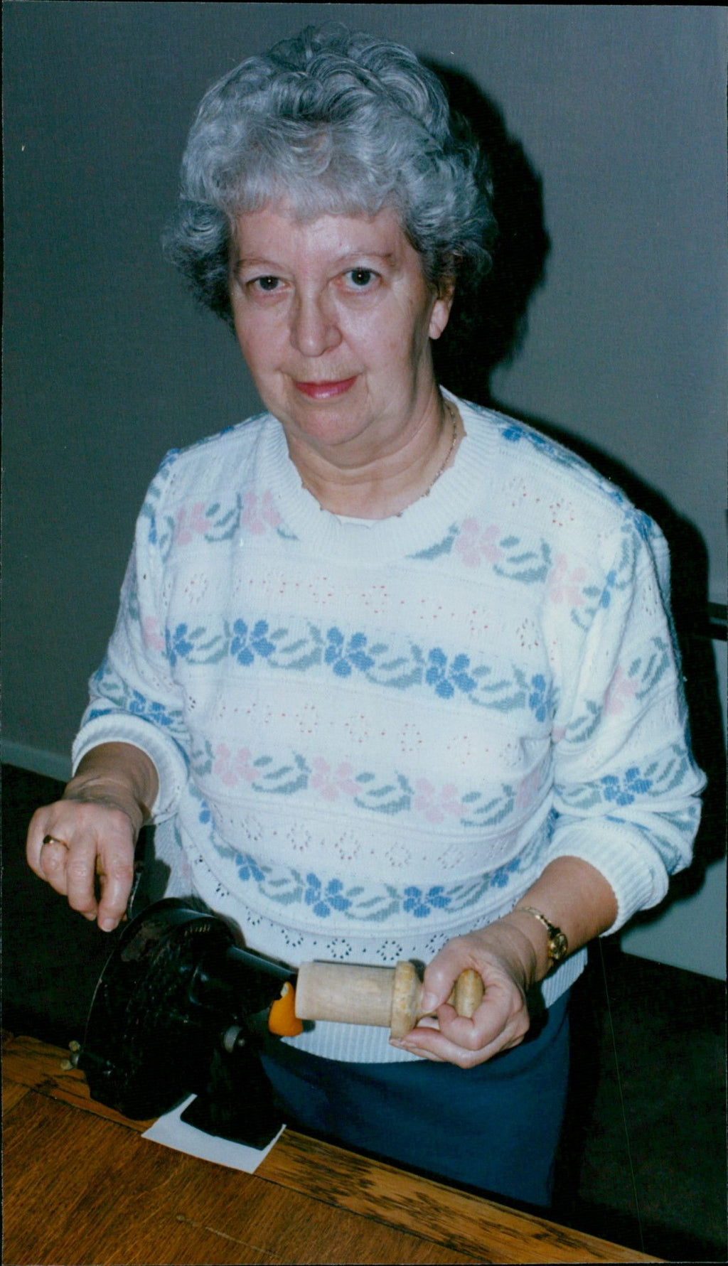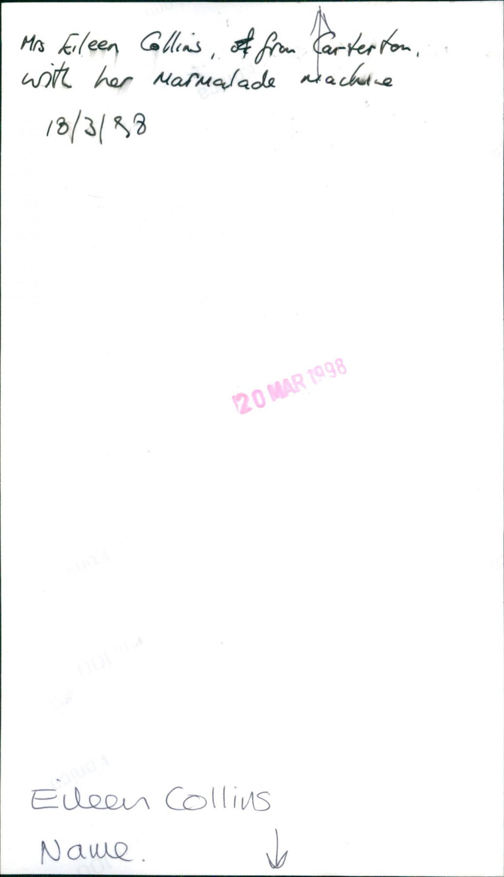 Eileen Collins, from Carterton, with her Marmalade peeling machine. Eileen Collins, from Carterton, with her Marmalade peeling machine.