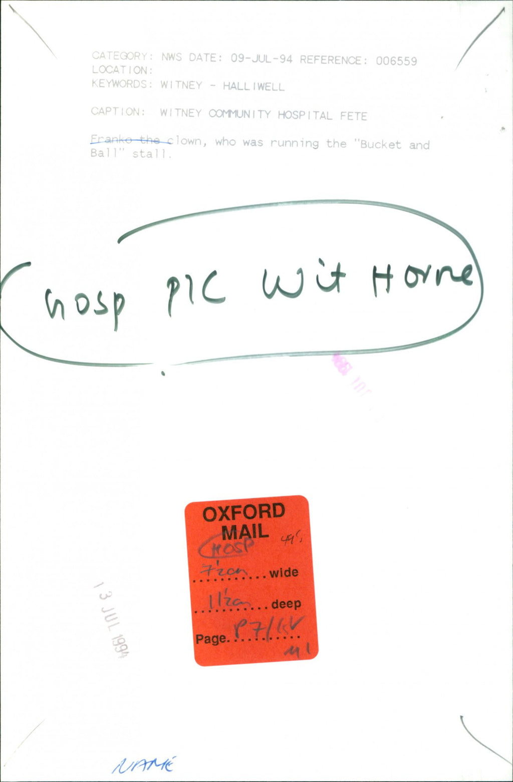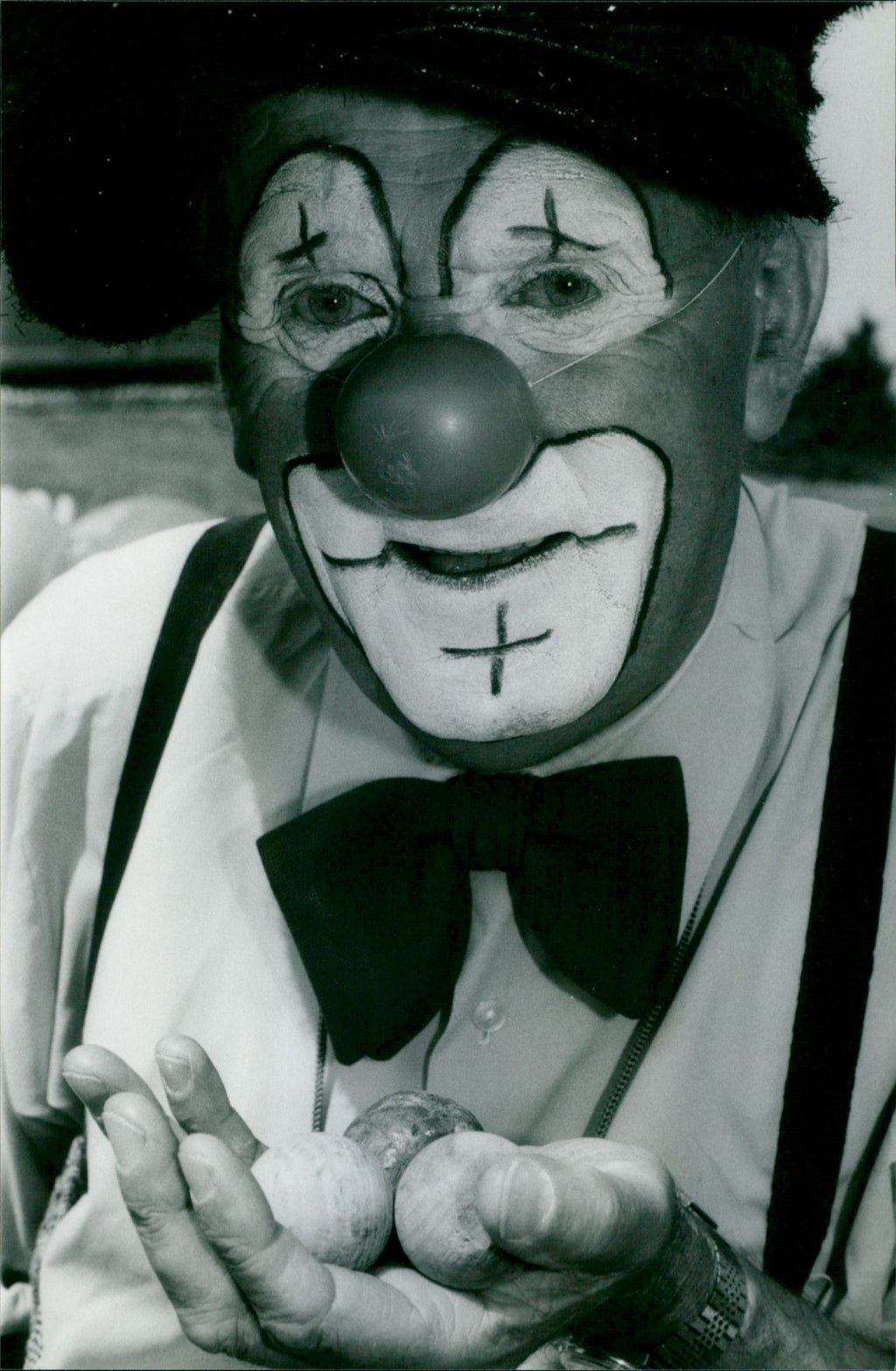Franko the clown, who was running the "Bucket and Ball" stall. Franko the clown, who was running the "Bucket and Ball" stall.