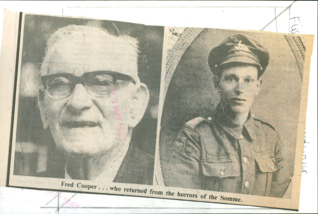 Fred Cooper who returned from the horrors of the Somme. Fred Cooper who returned from the horrors of the Somme.