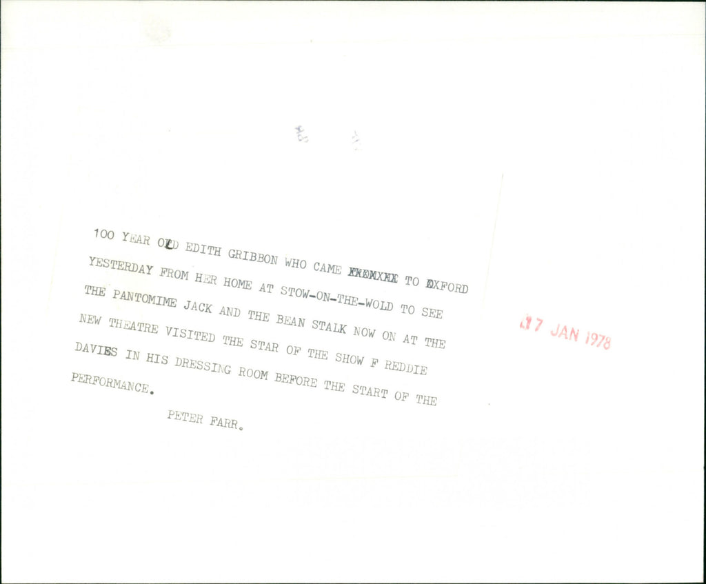Edith Gribbon came to Oxford to see Freddie Davies' show, Jack and the Bean Stalk Edith Gribbon came to Oxford to see Freddie Davies' show, Jack and the Bean Stalk
