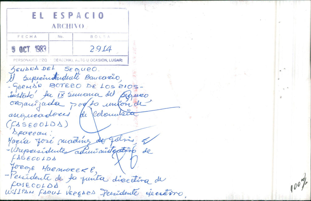 The Banking Superintendent, Germán Botero de los Ríos, opened the Insurance Week organized by the Colombian Insurers Union.(FASECOLDA) In attendance: Mariá Jose Martinez de Galvis (Administrative Vice President of FASECOLDA), Jorge Marmorere, Chairman of the Board of Directors of FASECOLDA), William Fadul Vergara (Executive President) The Banking Superintendent, Germán Botero de los Ríos, opened the Insurance Week organized by the Colombian Insurers Union.(FASECOLDA) In attendance: Mariá Jose Martinez de Galvis (Administrative Vice President of FASECOLDA), Jorge Marmorere, Chairman of the Board of Directors of FASECOLDA), William Fadul Vergara (Executive President)