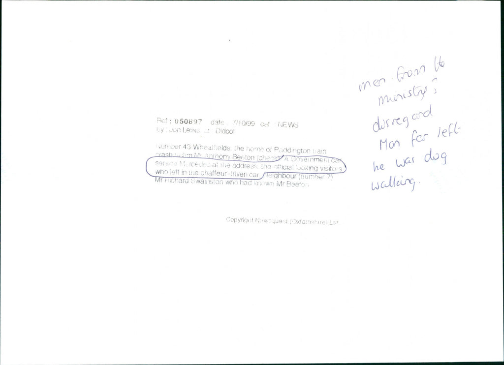 A government car service Mercedes at the address of Paddington train crash victim Mr Anthony Beeton. A government car service Mercedes at the address of Paddington train crash victim Mr Anthony Beeton.